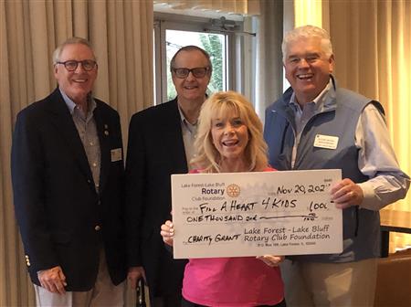 presented District 6440 Update. Fill A Heart 4 Kids received $1000 check from LFLB Rotary Club. Chris Collins received Fred Jackson Fellow certificate. Fred Jackson and Sunny Lu received Fred Jackson Foundation advanced pins.