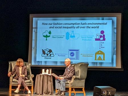 On 4/4/2022, The LF & LB Libraries held an author discussion on the fashion industry's impact on the environment at Gorton Community Center. The event was moderated by Ron Hirasawa of the LF-LB Rotary Club.