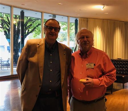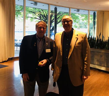Speaker Larry Kuhl presented two Rotary Foundations; Lake Forest - Lake Bluff Rotary Club Foundation and The Rotary Foundation of Rotary International. Larry Kuhl presented Fred Jackson Fellowships pin to Art Lewis and John Johnson.